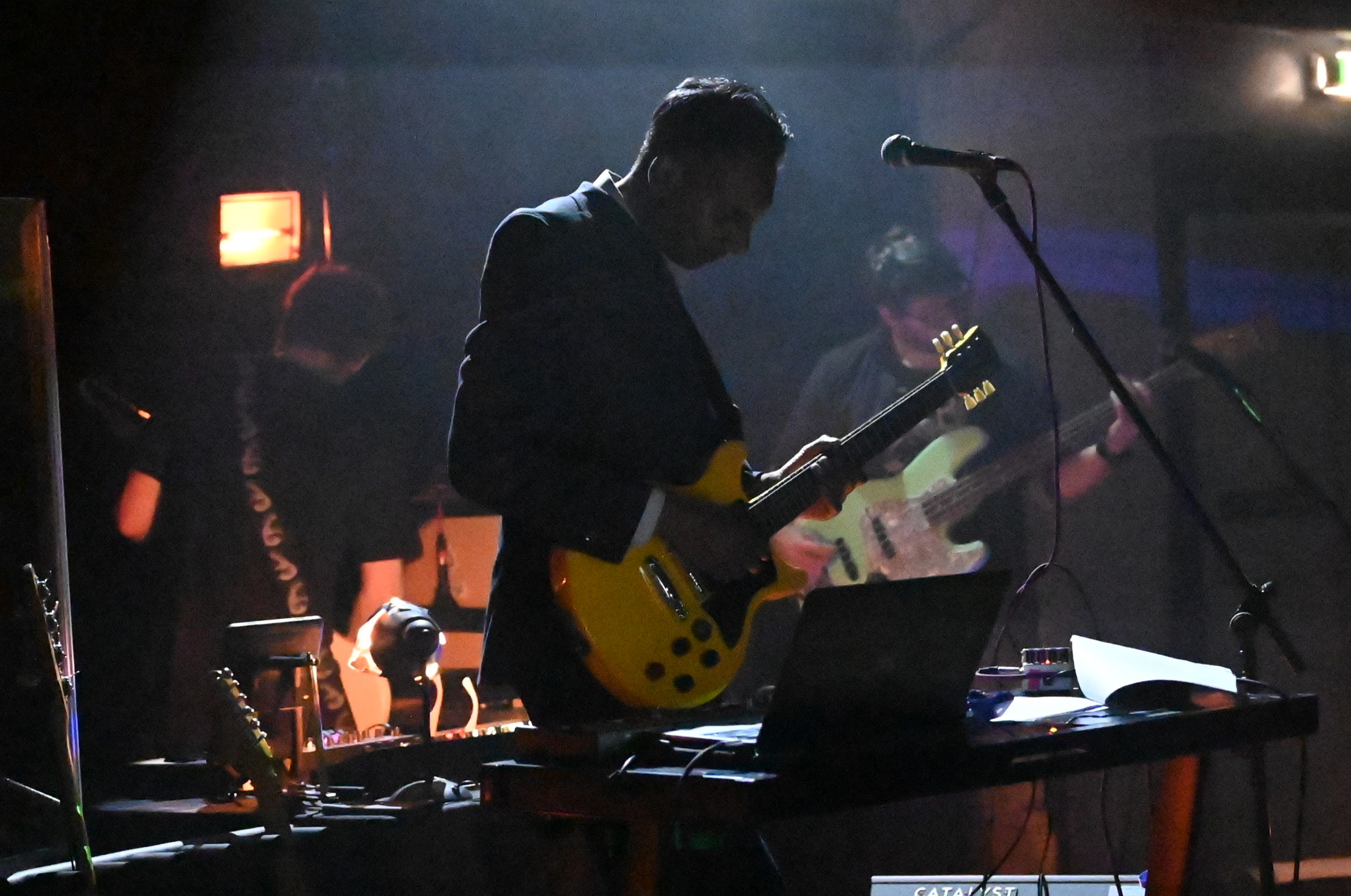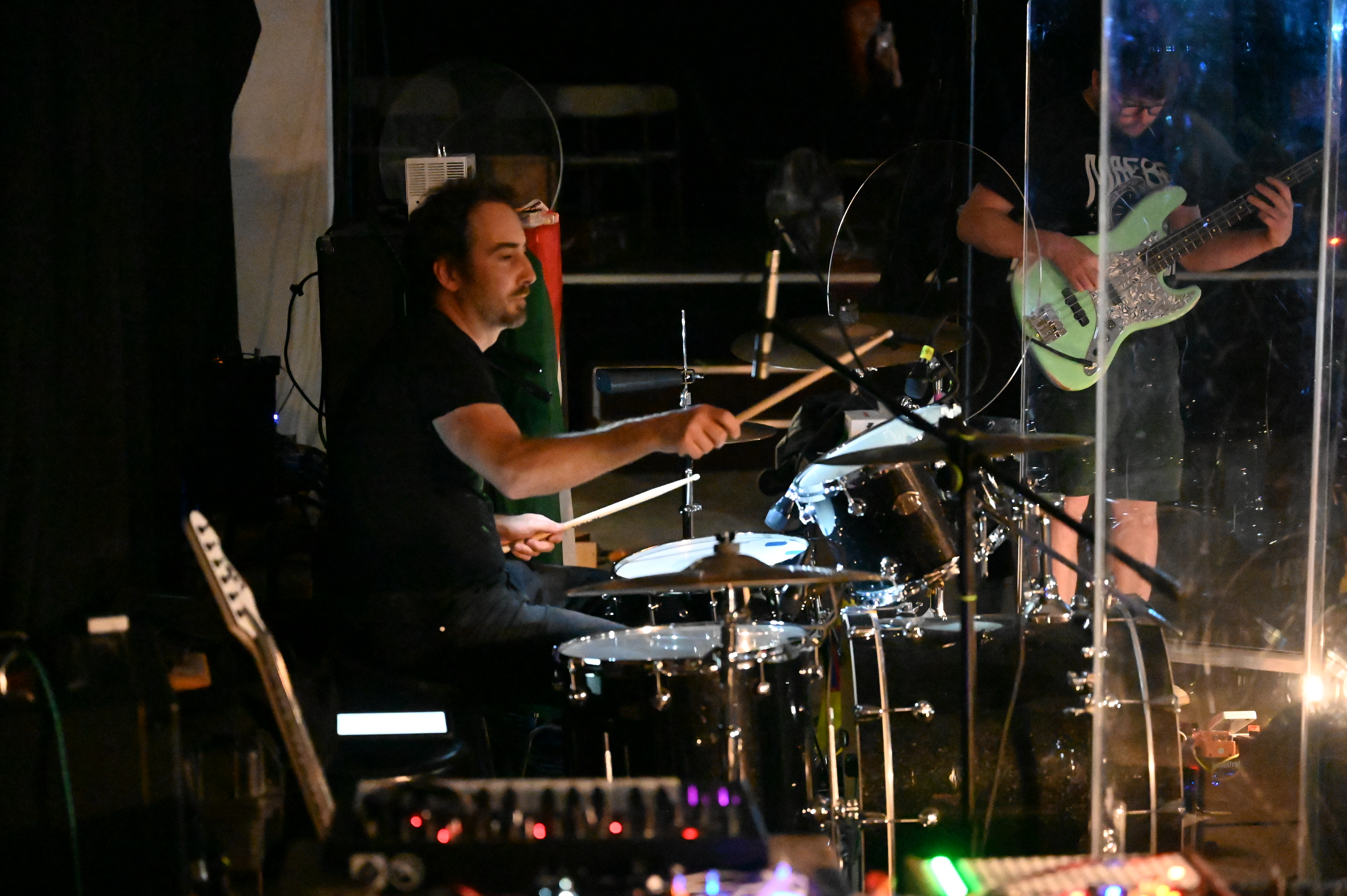 Ollie: I’d say during the research and development, those couple of weeks that we had over the last couple of years, we kind of got a good idea of the sort of sounds we were going to use. I’m using a lot of synthesizers, and originally, I think we had a double bass and we were bowing it, then Rory had a great idea about bowing the cymbals, and it was making almost a horror film soundtrack. What is that machine you’ve created, Rory?