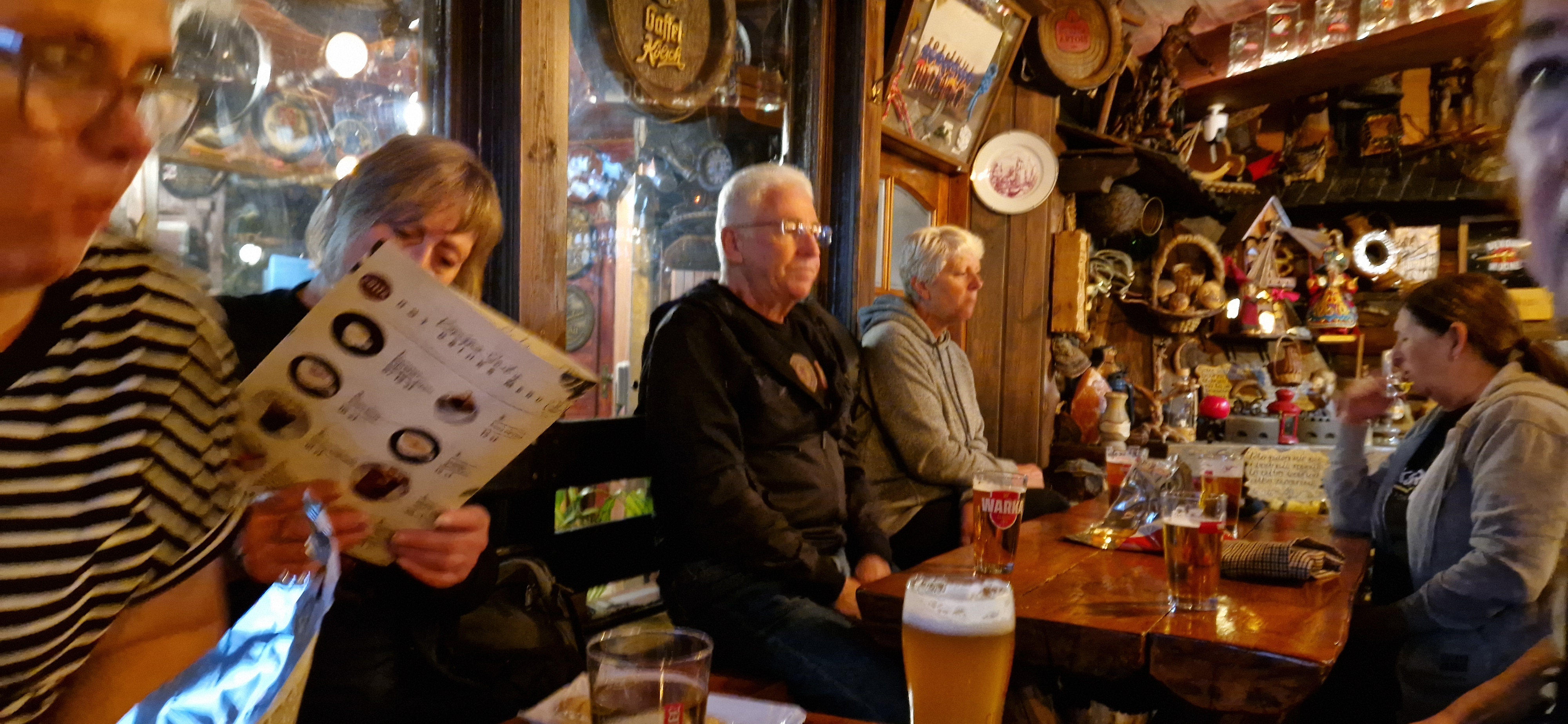 Despite the lady in reception telling us everywhere was closed, we quickly found our new ‘regular’ pub just over the road. The local beer went down well with those that drunk it, whilst I enjoyed the local cider. We shared snacks of crisps, twiglets and platters of smoked cheese and had a round of local shots that tasted of marzipan, but nobody actually knew what the drink was.