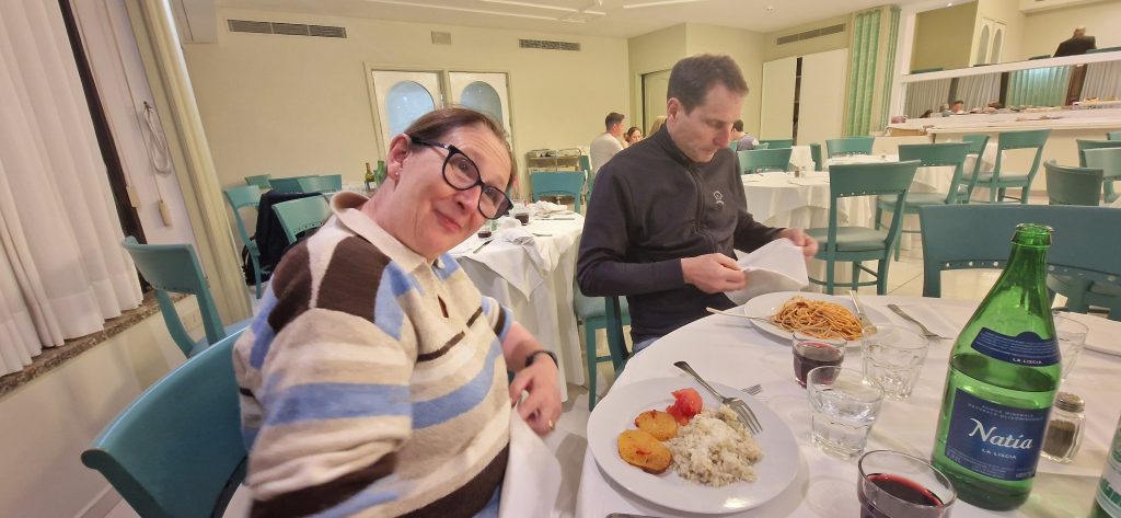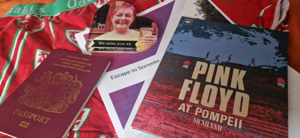 It’s not a football trip, but we were travelling with football friends and it was booked through Wonky Sheep, the Wales Away official travel company. We had been encouraged to go by long time travelling companion, Posh Dainton. We booked the trip way back last autumn. After that Posh’s health deteriorated to the point where there was a serious doubt as to whether she would be fit enough to go. But she really wanted something to look forward to, so didn’t entertain cancelling.  Then, on 3rd January, she went on to a much bigger trip than Italy, she went to the great gig in the sky.