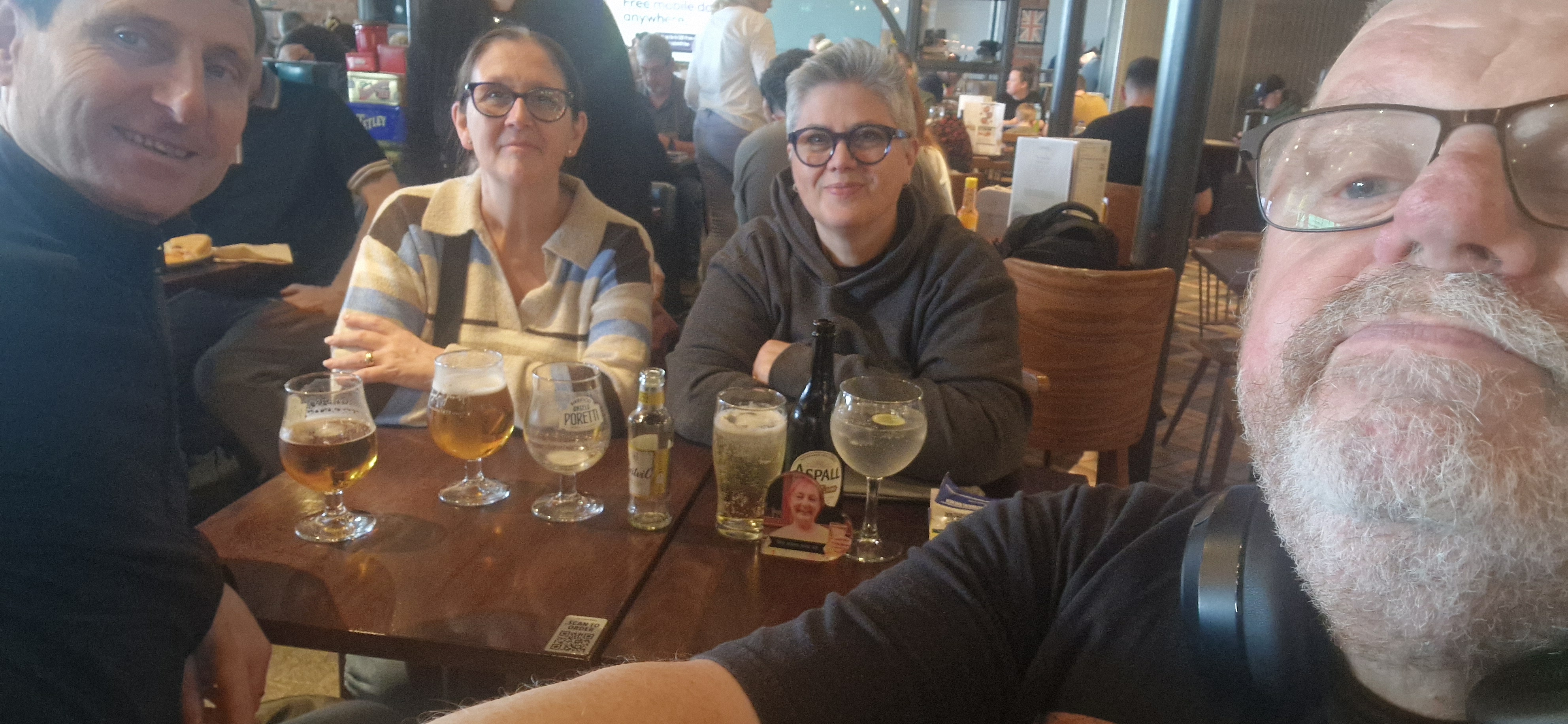 Before we know it, we are united with this week’s travelling companions, Andrew and Tracey, in ‘Spoons. There was a time we would have sat discussing how many pints we could squeeze in before we fly and plotting nightclubs to visit tonight. Today we discuss bladder control for the flight, nursing homes and ISAs. We place a photo of Posh on the table and she tells us to stop being boring.