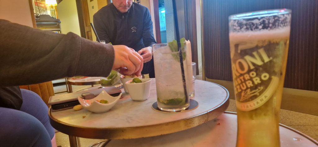After our evening meal we are knackered but force ourselves down the road to a local pub and unwind with a few Mojitos.