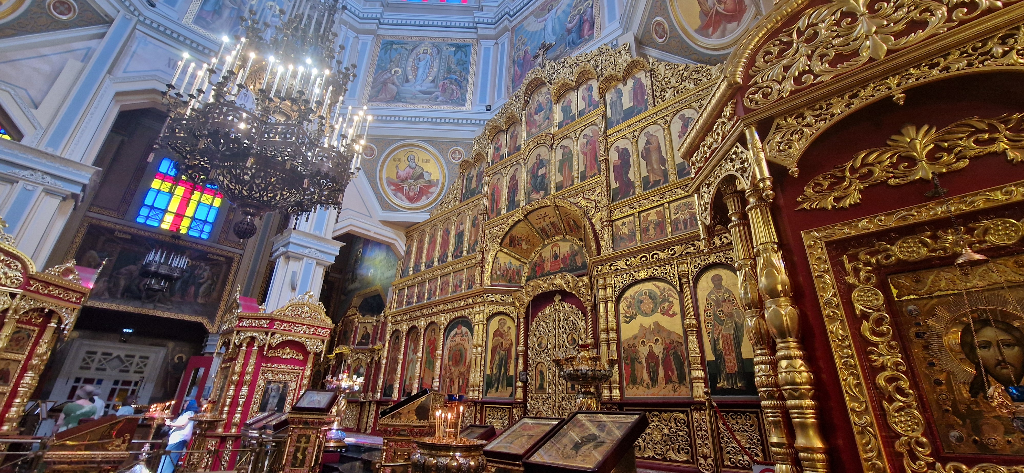 After the Russian Revolution, religion was frowned upon, so it was converted into a museum of the Kazakh Soviet Socalist Republc. In 1995, after the fall of the Soviet Union, it was handed back to the church and restoration began. Today the interior is amazing, covered in frescoes and adorned with iconography. It is truly spectacular, but at the same time you can’t help but think it looks a how Donald Trump’s bathroom probably looks.
