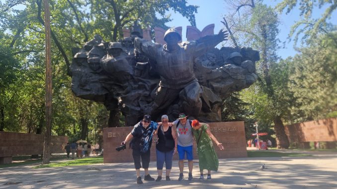 Next up, we go to see the war memorial to the Panfilov Twenty Eight. As Hitler’s army was pushing towards Moscow (part of Operation Barbosa), 28 Kazakh soldiers from Almaty, led by Russian commander Ivan Panfilov, fought bravely and contributed to the delay of the advancing German Army. According to Christopher Robbins’ book (see day one blog), they were little more than farmers and went up against Panza Tanks with tractors. There are small monuments of each of the soldiers in the park, giving their date of birth and date of death. Those that died in combat have 1941 as date of death. Those that have a later date of death were captured and put in prisoner of war camps.