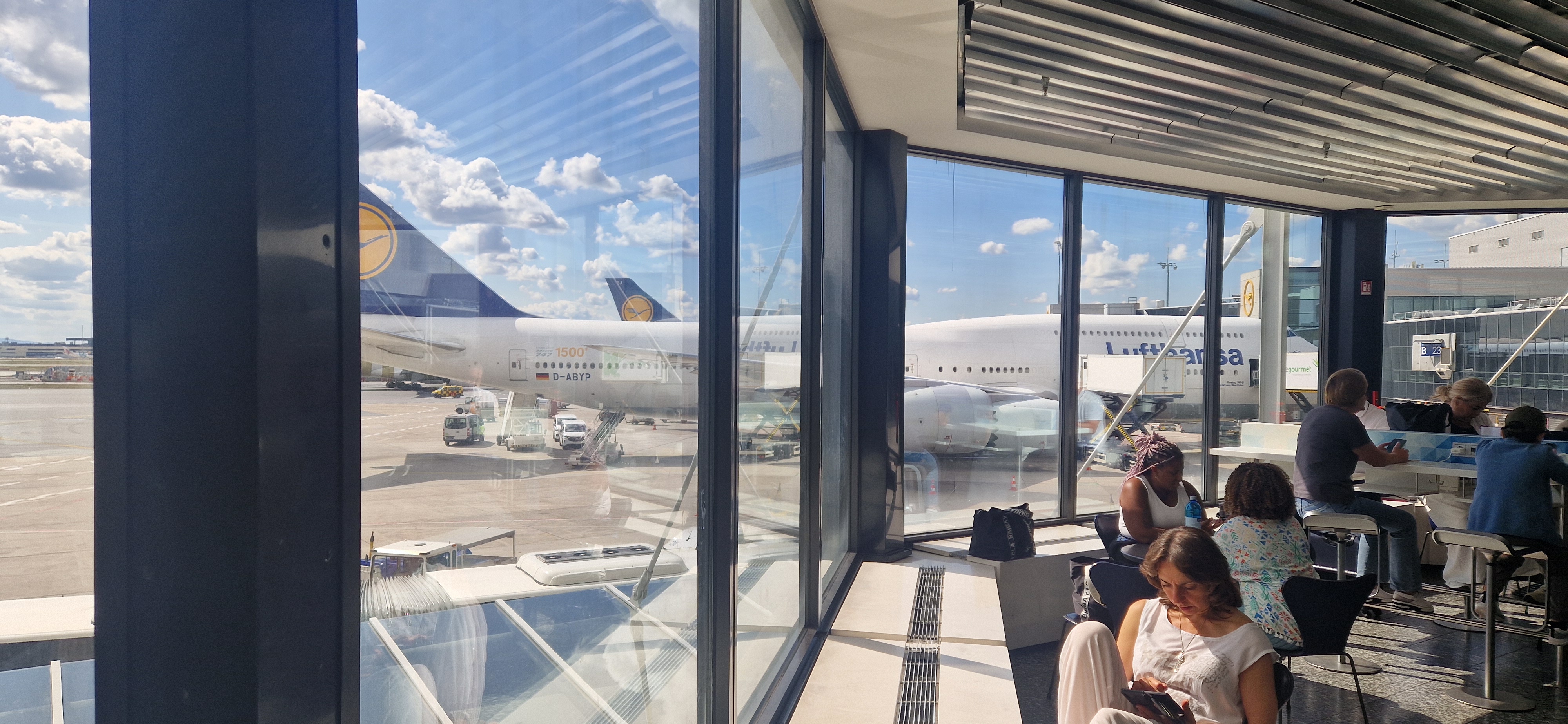 After an hour of a young Chinese lad sleeping with his head on my shoulder, we are soon in Frankfurt, which is an enormous airport. Last time we flew through here we nearly missed our connecting flight – despite there being a two hour gap. Fortunately it only takes ten minutes to make our way to our terminal this time, leaving us with an hour to spare.